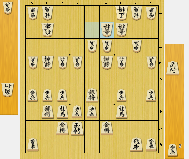 こうした背景があるので、冒頭の局面で筆者は、別の場所から戦端を開きました。具体的には、☗4六角と指します。これが効果的な攻めを行う下準備ですね。