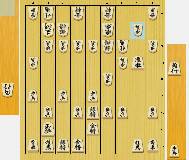 改めて、上記ツイートの局面を始めから振り返ってみましょう。図は相手が☖2二歩と指し、2筋を守ったところです。