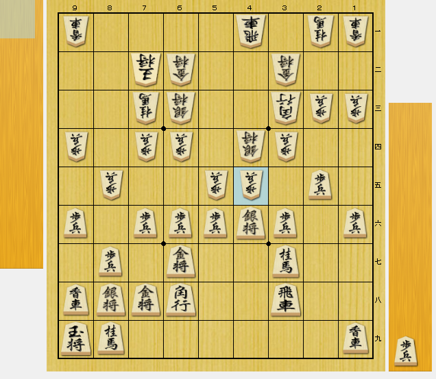 改めて、上記ツイートの局面を始めから振り返ってみましょう。図は相手が☖4四銀と指し、攻めの銀を繰り出したところです。