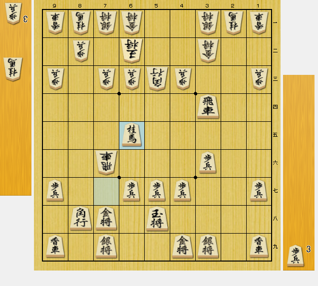 そして、この利かしを入れておくと、先手は今度こそ☗4五桂と跳ねることが出来るのです。